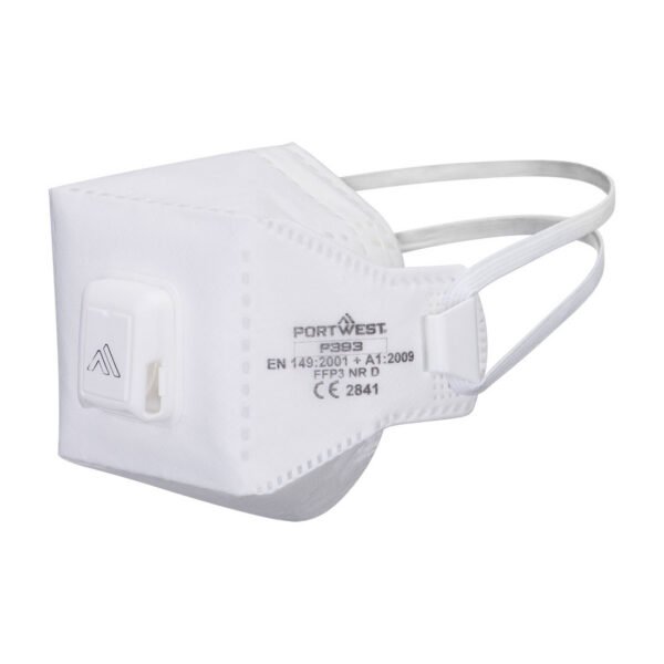 Innovative compact folding mask with 7 dynamic parts providing excellent facial movement with maximum comfort. Valved and with inner foam to increase the comfort of the wearer. DOLOMITE optional clogging test. An individual polybag and special flat shape make it easy to store and vending machine ready. New features include toggle adjuster for optimum fit, and staple-free strap adjusters.