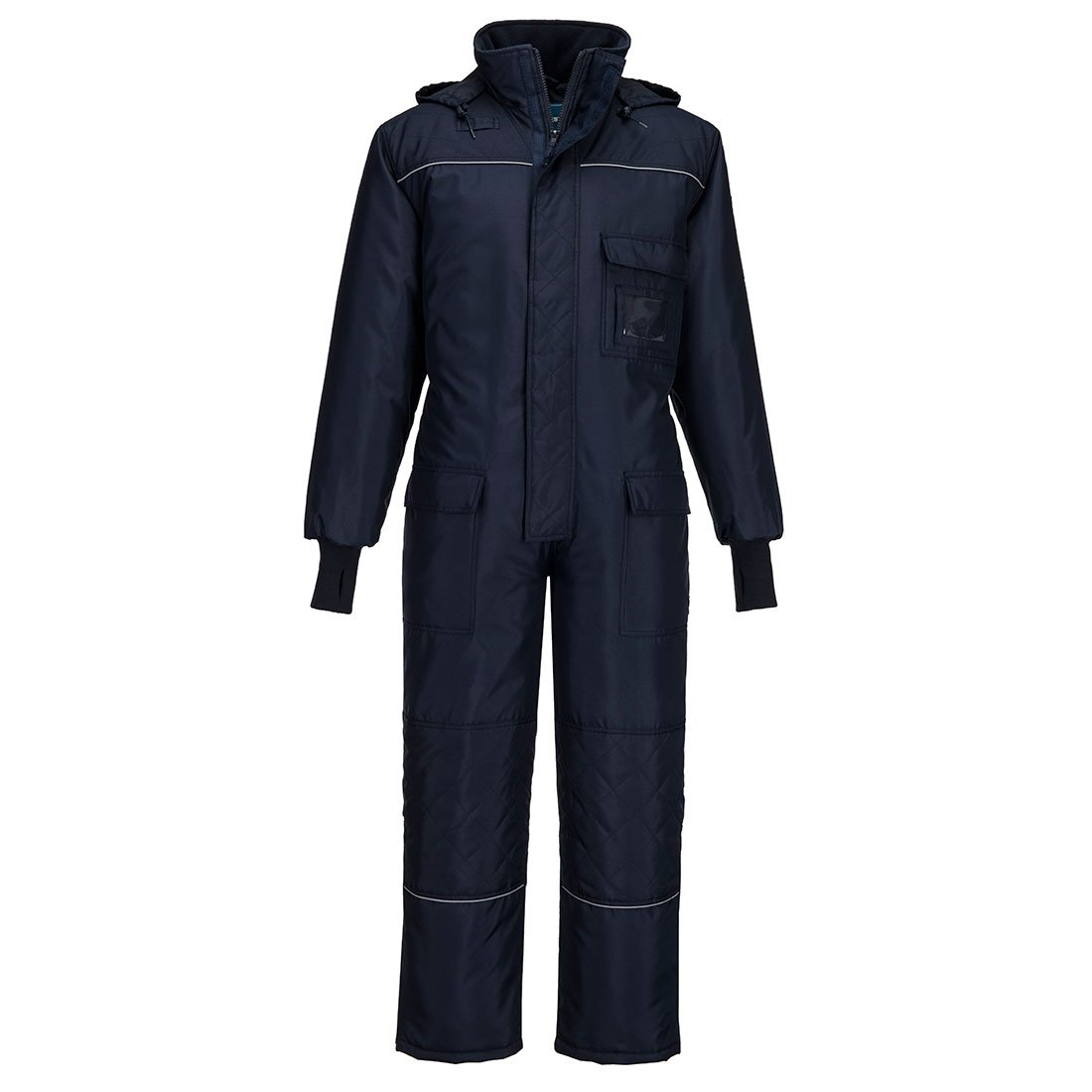 Combinezon robust, all-in-one, ofera cea mai bună protecție pentru lucrul in depozite frigorifice, acest combinezon este calduros. Banda reflectorizanta este utilizata in jurul pieptului, spate si picioare pentru a creste vizibilitatea purtatorului. Buzunarele de pe sold supradimensionate sunt perfecte pentru depozitare si acces in timp ce purtati manusi. Picioarele combinezonului au zona consolidata pentru genunchi si ofera un plus de confort. Fermoare până la genunchi și închidere cu cârlig și buclă pentru o fixare ușoară. Pentru securitate si personalizare exista un buzunar la piept cu zona transparenta pentru acte, precum si betelie elastica la spate pentru confort suplimentar